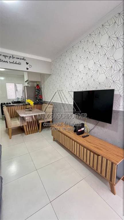 Sobrado com 2 quartos em condominio, Mobiliado, ar condicionado nos quartos, a 350 metros da praia, no Bairro Vila Caiçara em Praia Grande, segue características :